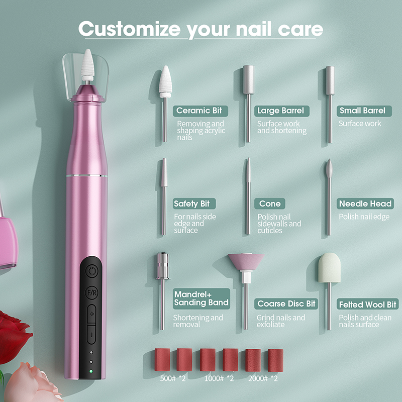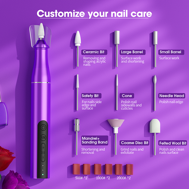 Le kit de perceuses à ongles sans fil propose de nombreuses bandes abrasives et différents forets pour choisir celui qui convient à différents types de clous. Pour changer la perceuse, il suffit de la retirer, de la remplacer par la perceuse souhaitée et d'appuyer sur le bouton marche/arrêt pour l'utiliser, ce qui en fait un cadeau idéal pour vos amies. Si vous avez des questions sur ce produit, n'hésitez pas à nous contacter.