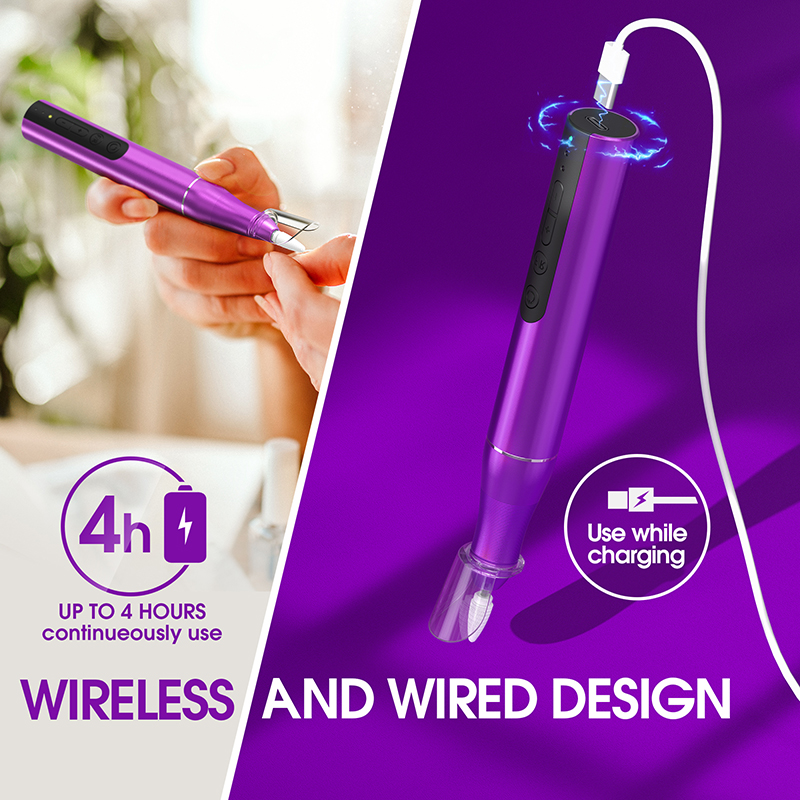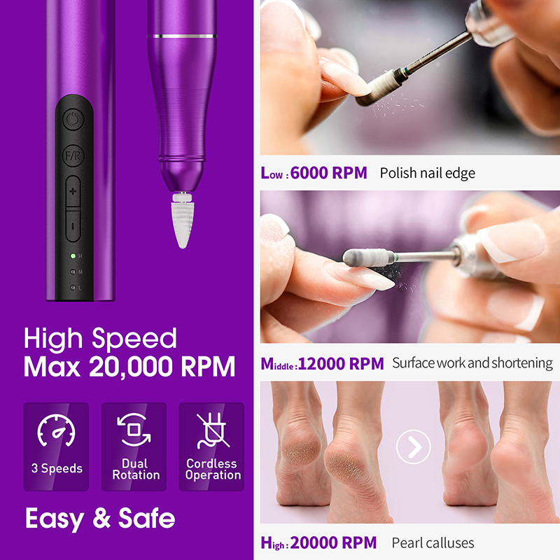 Les forets à ongles pour ongles en acrylique sont conçus pour être légers (85 g) et peuvent tenir dans votre sac à main ou dans la poche de vos vêtements. Il est également livré avec un câble de chargement USB qui peut être facilement branché sur n'importe quel périphérique USB pour le chargement, ce qui vous permet de profiter facilement de vos soins des ongles à tout moment et n'importe où.