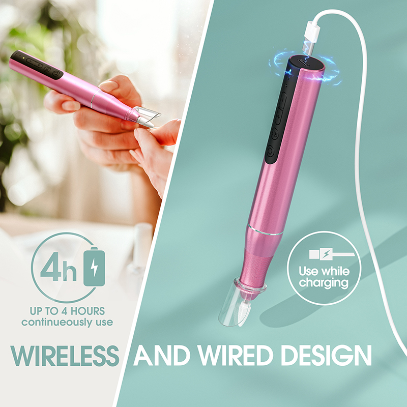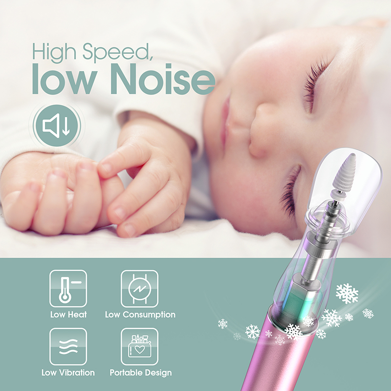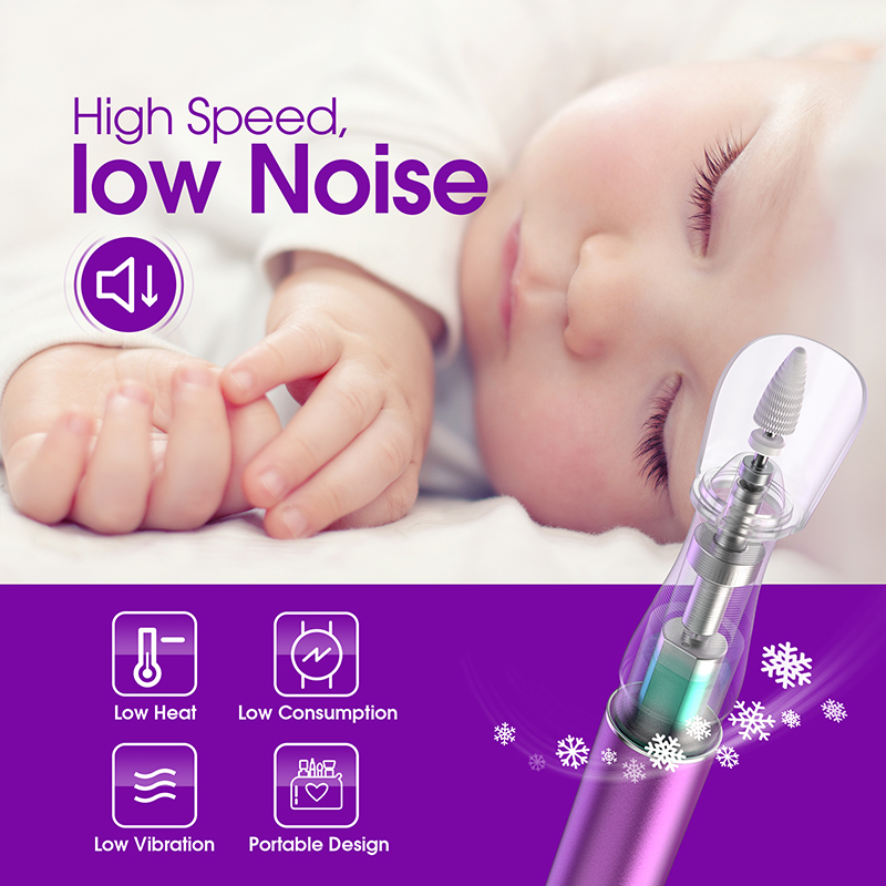 Cette perceuse à ongles électrique est dotée du dernier corps en aluminium avec une conception anti-vibration, qui peut réduire efficacement le bruit et la chaleur lors du meulage des ongles, garantissant ainsi que vous ne dérangerez personne pendant le polissage de vos ongles. L'apparence ergonomique en forme de stylo offre une prise antidérapante confortable et vous permet de retirer facilement les ongles en gel.