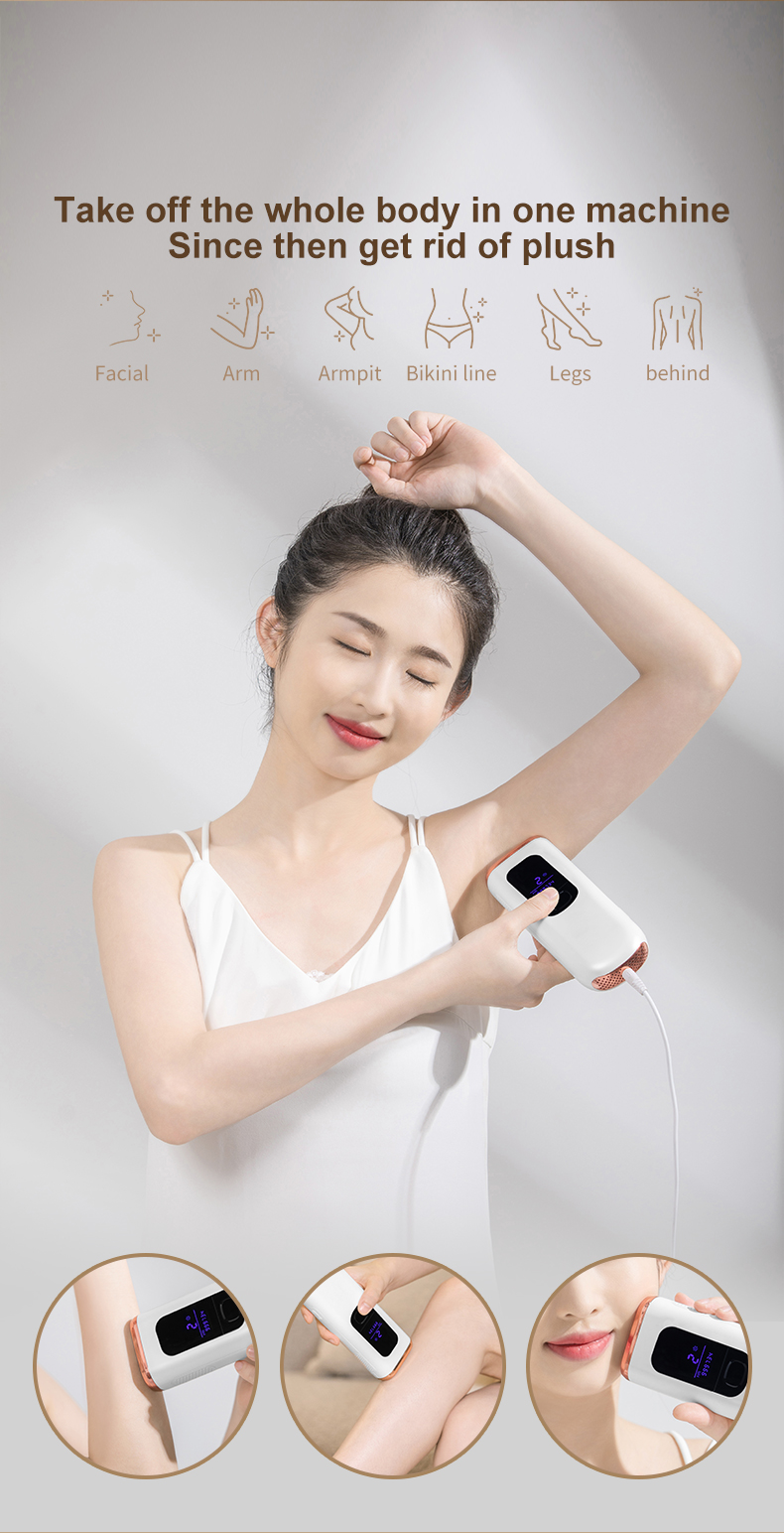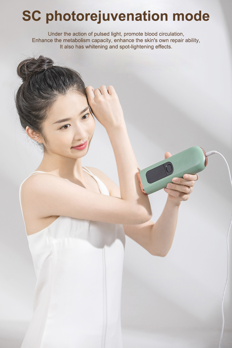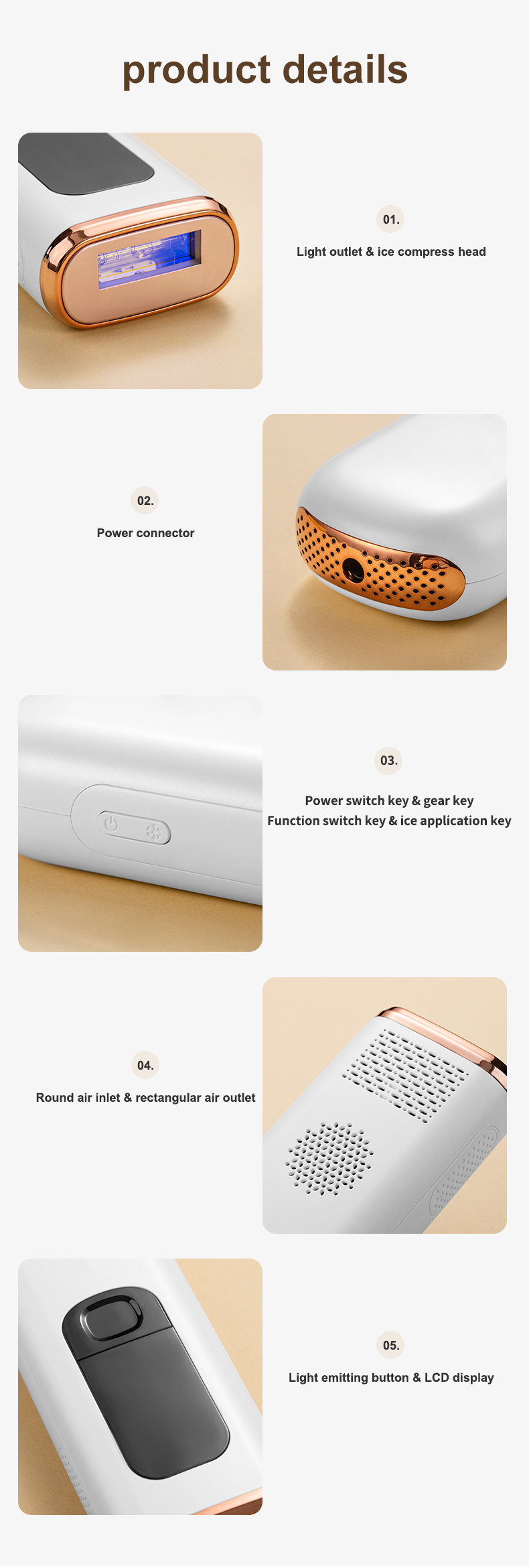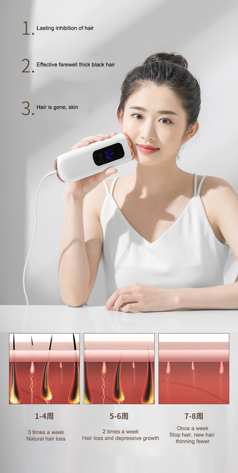 (Remarque : 1, ne convient pas aux peaux tatouées et trop bronzées, aux zones blessées et aux femmes enceintes. 2, il s'agit d'un appareil enfichable, veuillez garder l'appareil toujours connecté à l'alimentation pendant le traitement. )