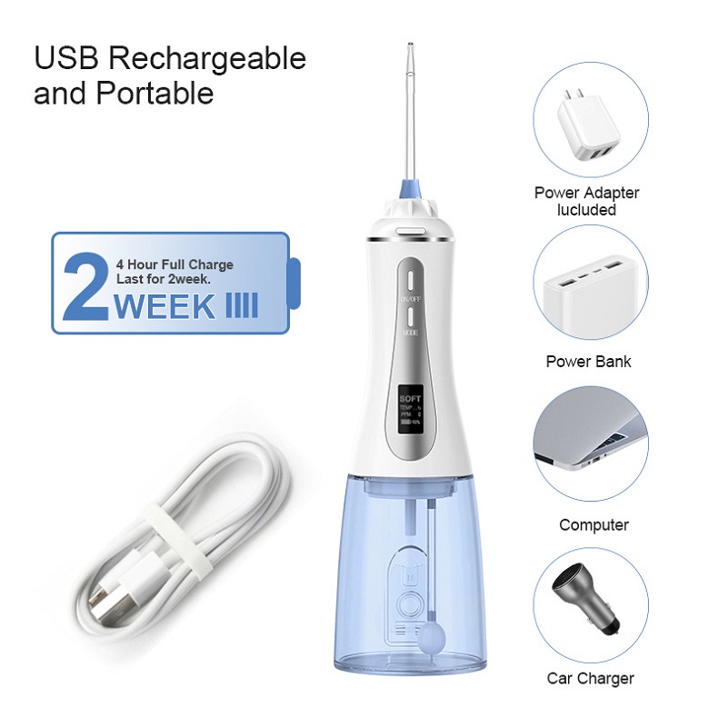 Ce fil dentaire à eau offre une durée de vie de batterie deux fois supérieure à celle des autres grâce à une puissante batterie écologique. Chargez simplement pendant 3 heures et profitez de 30 jours d'utilisation. Il est compact et léger, parfait pour une utilisation à la maison et en déplacement. Ce cure-dents à eau est livré avec un câble USB (adaptateur non inclus), ce qui en fait un kit de voyage idéal. Bénéficiez d'une autonomie de batterie exceptionnellement longue de 30 jours, ce qui en fait une solution véritablement portable pour votre commodité